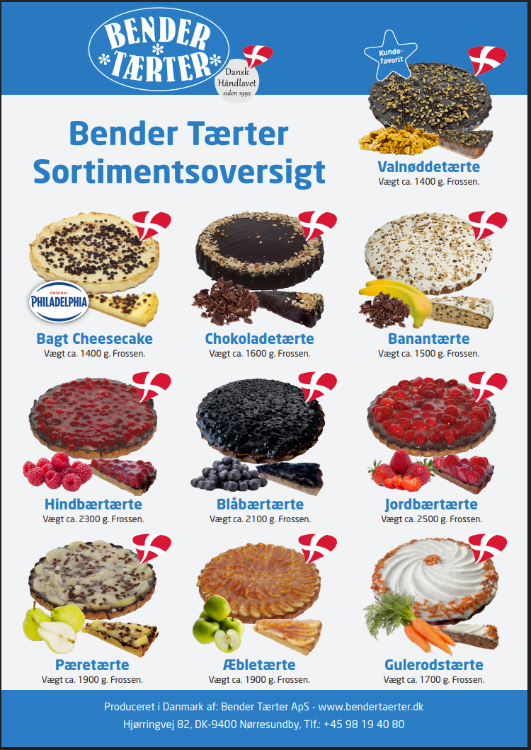 Alle 10 slags tærter leveres dybfrosne og skal opbevares ved